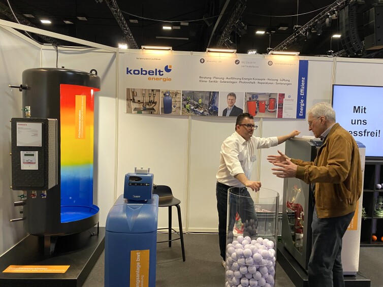 In Halle 2 empfängt Peter Kobelt, Geschäftsleiter der Kobelt Energie GmbH. Sein Stand zeigt anhand von Bildern an der Wand den gesamten Sanierungsprozess – von der ersten Beratung über die Installation bis zur Zertifizierung, die für kantonale Förderbeiträge erforderlich ist. Eine farbig markierte Frischwasserstation mit Schichtspeicher und eine Enthärtungsanlage ziehen die Blicke auf sich. „Die Frischwasserstation ist besonders effizient, weil es kaum stehendes Wasser gibt“, erklärt Kobelt. Auch eine Erdwärmesonde wird präsentiert. Warum eine Messe für ihn trotz Digitalisierung wichtig ist? „Weil Vertrauen im persönlichen Kontakt entsteht – und das ist entscheidend für jedes Projekt.“