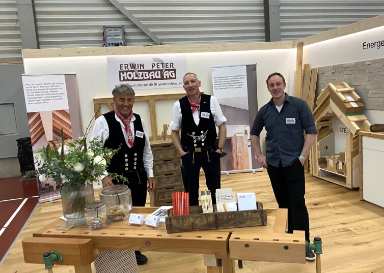 Gleich zu Beginn der Halle 1 fällt der Stand der Erwin Peter Holzbau AG auf: Der Duft von frischem Holz, Zimmerleute in traditioneller Zunftkleidung und ein durchdachter Aufbau schaffen eine einladende Atmosphäre. „Es läuft gut“, sagt Erwin Peter, ehemaliger Geschäftsführer und Gründer des Unternehmens, mit einem Lächeln. „Wir haben schon einige spannende Gespräche geführt.“ Neben Holzproben wird ein Modellhaus gezeigt, das den Aufbau einer energetisch sanierten Gebäudehülle veranschaulicht. Besonderes Interesse weckt auch die Möglichkeit, Dämmung und Schallschutz mit Moos umzusetzen – eine clevere Lösung, die zum Weiterdenken anregt.