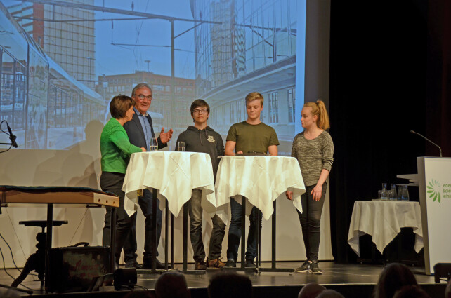 Grosse Klasse waren auch die drei Winterthurer Schüler, die unerschrocken auf die Bühne traten, um ihre Erwartungen für die Zukunft darzulegen und sich nicht scheuten, pfiffige Fragen zu stellen, welche von Doris Leuthard postwendend und genauso pfiffig beantwortet wurden. Auch an die Adresse der Gegnerschaft der Energievorlage richtete die Bundespräsidentin ihr Wort. So verwies sie etwa in Anspielung an deren Kampagne auf das erste energieautarke Mehrfamilienhaus in Brütten und sagte: „Sie habe nachgefragt, in Brütten hat auch an den kältesten Wintertagen niemand frieren oder kalt duschen müssen.“