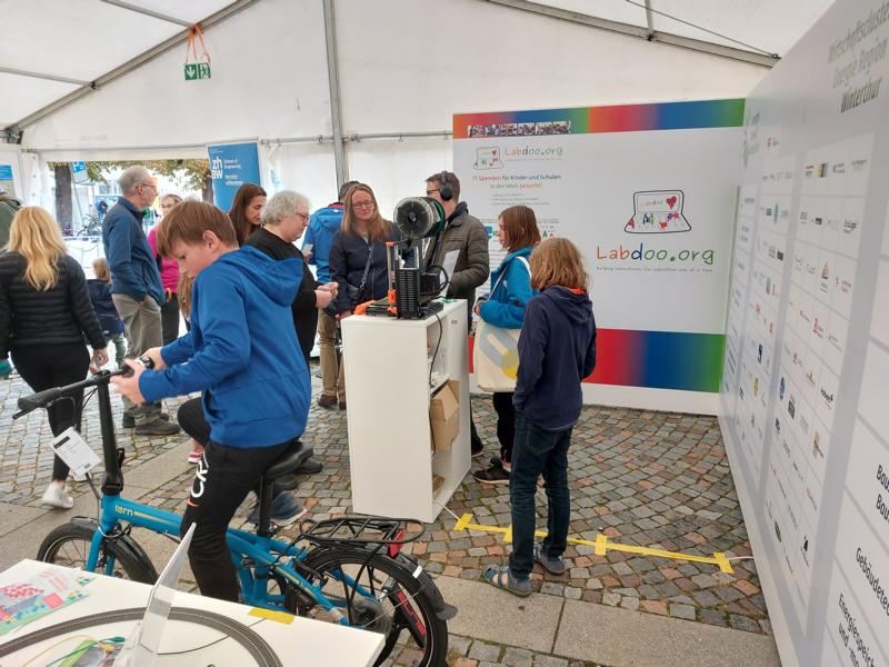 Im Rahmen des ersten Klimatags der Stadt Winterthur lud ebw gemeinsam mit der ZHAW School of Engineering die Bevölkerung ein, sich über das Netzwerk ebw und die Forschungsarbeiten der SoE zu informieren. Ebenfalls engagierten sich die Initiative Labdoo und das FabLab Winterthur.