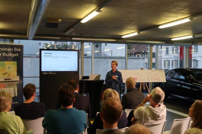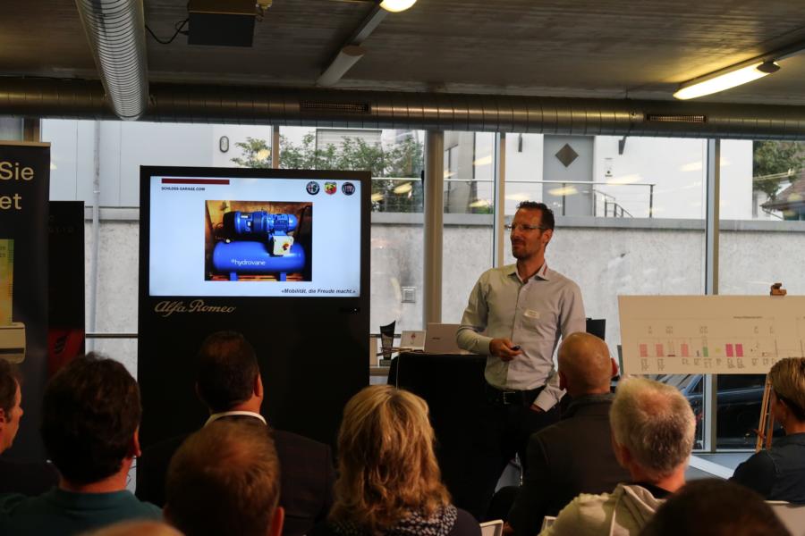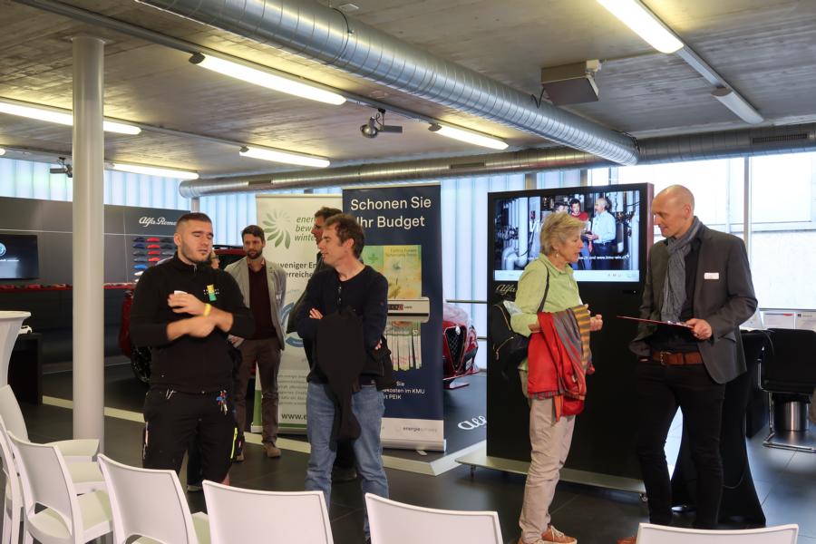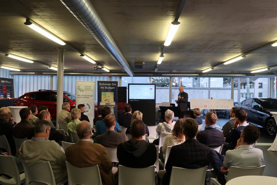 Mit einfachen Sofortmassnahmen lassen sich die Energiekosten im Betrieb um bis zu 15 Prozent senken – ohne grössere Investitionen. Das Programm «PEIK» von EnergieSchweiz ist die professionelle Energieberatung für KMU, bei welchem erfahrene EnergieexpertInnen professionell und unabhängig beraten. Oberste Priorität hat dabei immer die Wirtschaftlichkeit des jeweiligen Betriebs.Roland Frei, Leiter PEIK Deutschschweiz, zeigte den rund 30 Teilnehmerinnen und Teilnehmern die Vorzüge dieses Programms auf, das ohne Verpflichtungen auskommt, dafür jedoch die nötige Planungsgrundlage bietet für erste Schritte. Spätestens nach dem Erfahrungsbericht von Christian Maier, Geschäftsführer der Schloss-Garage, war klar: Anmelden und durchführen.