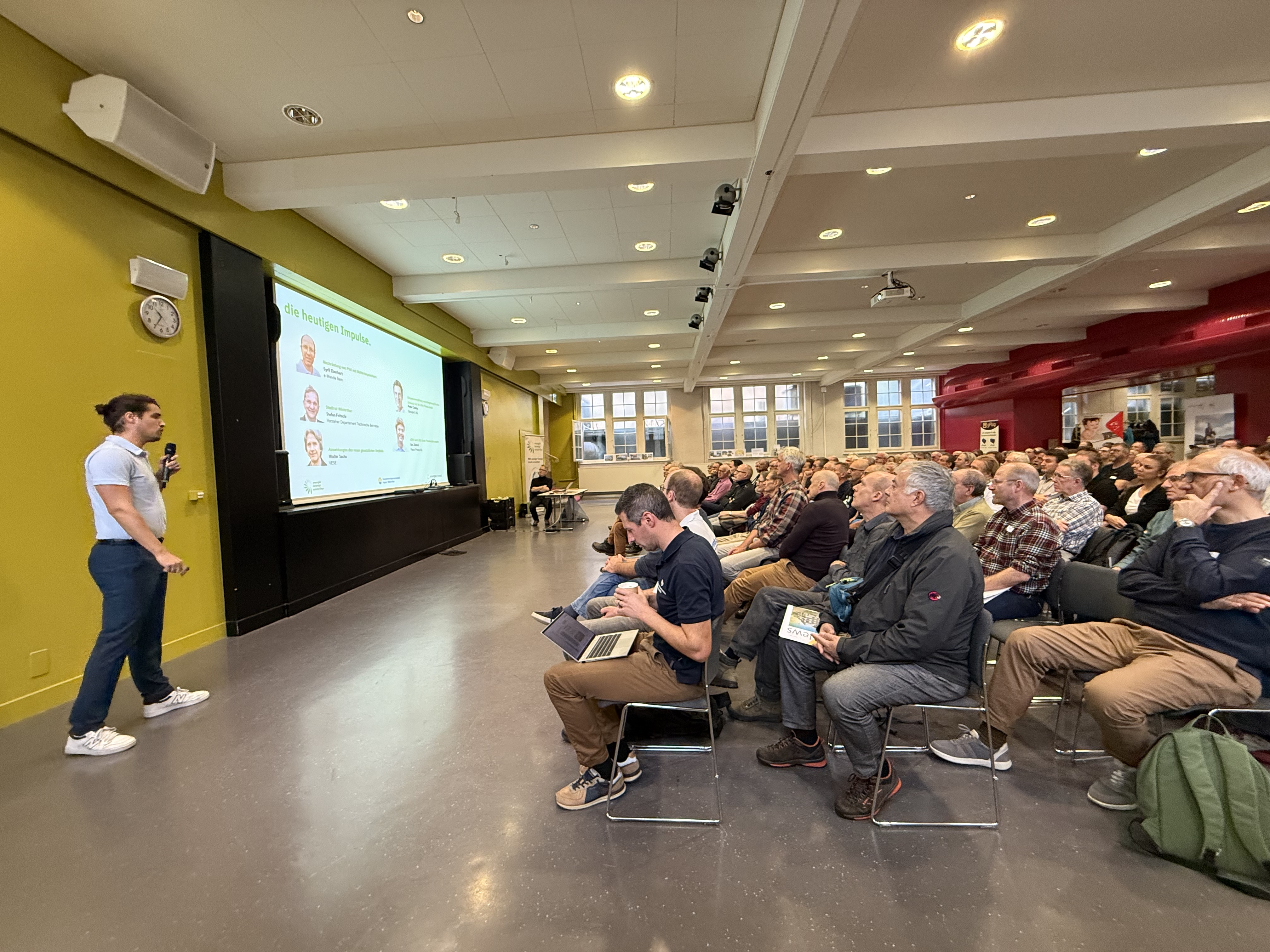 Am Samstag, 29. November 2025, fand die PV-Praxis Tagung 2025 statt. Rund 200 Teilnehmende kamen nach Winterthur, um sich über die neuesten Entwicklungen der Photovoltaik auszutauschen. Der Anlass bot einen breiten Überblick über technologische Trends, gesetzliche Veränderungen und praxisnahe Erfahrungen aus der ganzen Schweiz. Organisiert wurde diese Tagung in Zusammenarbeit mit der Energiewendegenossenschaft Region Winterthur, dem Verein energie bewegt winterthur und dem Verband unabhängiger Energieerzeuger VESE.
