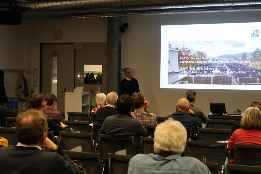 Photovoltaik ist ein Eckpfeiler der nachhaltigen Energieversorgung. Mittlerweile lässt sich die Technologie auch gestalterisch und architekturverträglich in Gebäude integrieren. Neue Formen, Farben und Montagemöglichkeiten, bifaziale Module sowie weitere Erfolge aus Forschung und Entwicklung laden geradezu ein, sich aktiv mit solarem Bauen zu beschäftigen.Zielgruppen dieser Fachveranstaltung waren ArchitektenInnen und PlanerInnen sowie Fachfirmen aus diesem Themenbereich. An der Besichtigung sowie den anschliessenden Fachreferaten nahmen rund 60 Personen teil.
