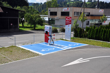30.09.2020 - Ab sofort können Elektroautos vor dem Werkhof der Gemeinde Turbenthal an der ersten Schnellladestation der Region bis zu 150 Km Reichweite in 10 Minuten nachladen.
