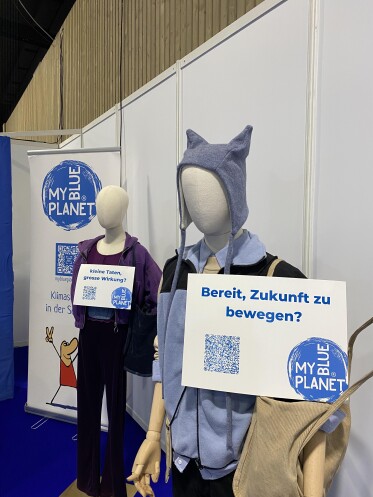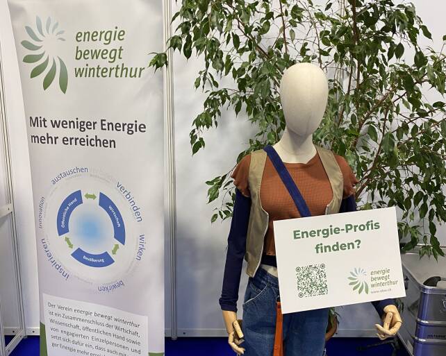 Ebenfalls mit dabei: der Verein energie bewegt winterthur – gemeinsam mit der Non-Profit-Organisation myblueplanet und dem Kleidergeschäft rework. Am gemeinsamen Stand begrüssen vier farbenfroh eingekleidete Schaufensterpuppen. Die Kleider wurden aus recycelten Materialien von rework hergestellt. Eine Puppe trägt Handwerkerkleidung und trägt in den Armen ein Schild, auf dem steht “Energie-Profis finden?” Wenn man den QR Code scannt, kommt man auf die ebw.ch Seite, auf der man lokale Fachbetriebe und Ansprechpartner für Bauprojekte findet. Weitere Puppen werben mit den Slogans „Bereit, Zukunft zu bewegen?“ oder „Energiewende mitgestalten?“ – und regen zum Mitmachen an. Am Stand können Besuchende ausserdem an einem Gewinnrad drehen und Mitgliedschaften sowie Gutscheine gewinnen. Unter dem Motto mehr action fürs Klima wird aufgezeigt, wie jede:r einzelne zum Klimaschutz beitragen kann – konkret, alltagstauglich und gemeinschaftlich.