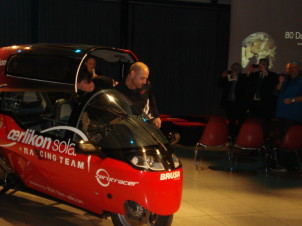 Das Oerlikon Solar Racing Team mit Tobias Wülser und Frank Loacker hat mit ihrem elektrisch angetriebenen Kabinenmotorrad die Erde umrundet. Dabei haben sie 16 Länder durchquert und über 30‘000 Kilometer zurückgelegt. Mit dem Sieg und einem Eintrag ins Guinessbuch der Rekorde kehrten sie nach Winterthur zurück.